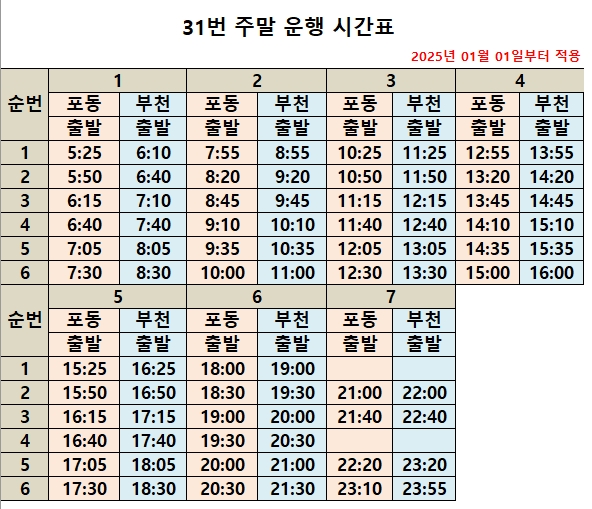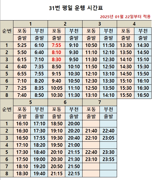 * 위 시간표는 교통정체(특히 출퇴근 시간)및 사고 차량 고장등